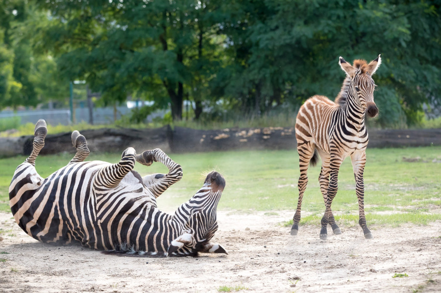 Elsősorban anyja tejével táplálkozik, de már ízlelgeti a zöldet, valamint a szénát is. Az újszülött zebra jellegzetes csíkos mintája némileg barnább árnyalatot is felvesz, ezzel még inkább beleolvad az Afrika-kifutónkba. Egyre bátrabban viselkedik, rendszeresen kergeti meg a kifutó antilopjait. Vidám, barátságos, felfedező természetével hamar belopta magát a látogatók szívébe, és hamarosan a szavannánk egyik sztárja lesz.