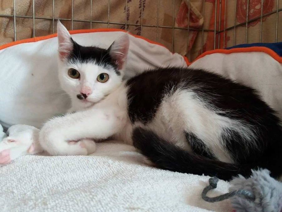 A játék hevében néha megijed, de csak azért, mert minden ismeretlen zaj és mozzanat ijesztő még számára - biztosan az utcán eltöltött nehéz hónapok miatt van így; ezért fontos, hogy először kisebb helyiségben legyen tartva, amit szépen fokozatosan meg tud szokni, ismerni. Persze mindemellett rengeteg foglalkozást, odafigyelést, játékot igényel. Első oltását augusztus 29-én kapta (leukózis, parvo, calici, herpesz, chlamydophia felis elleni oltás), ismétlő oltását követően (2-3 hét) már költözhet új otthonába, addig viszont bátran lehet ismerkedni vele. Sapi cica benti tartással valamint ivartalanítási kötelezettséggel fogadható örökbe.