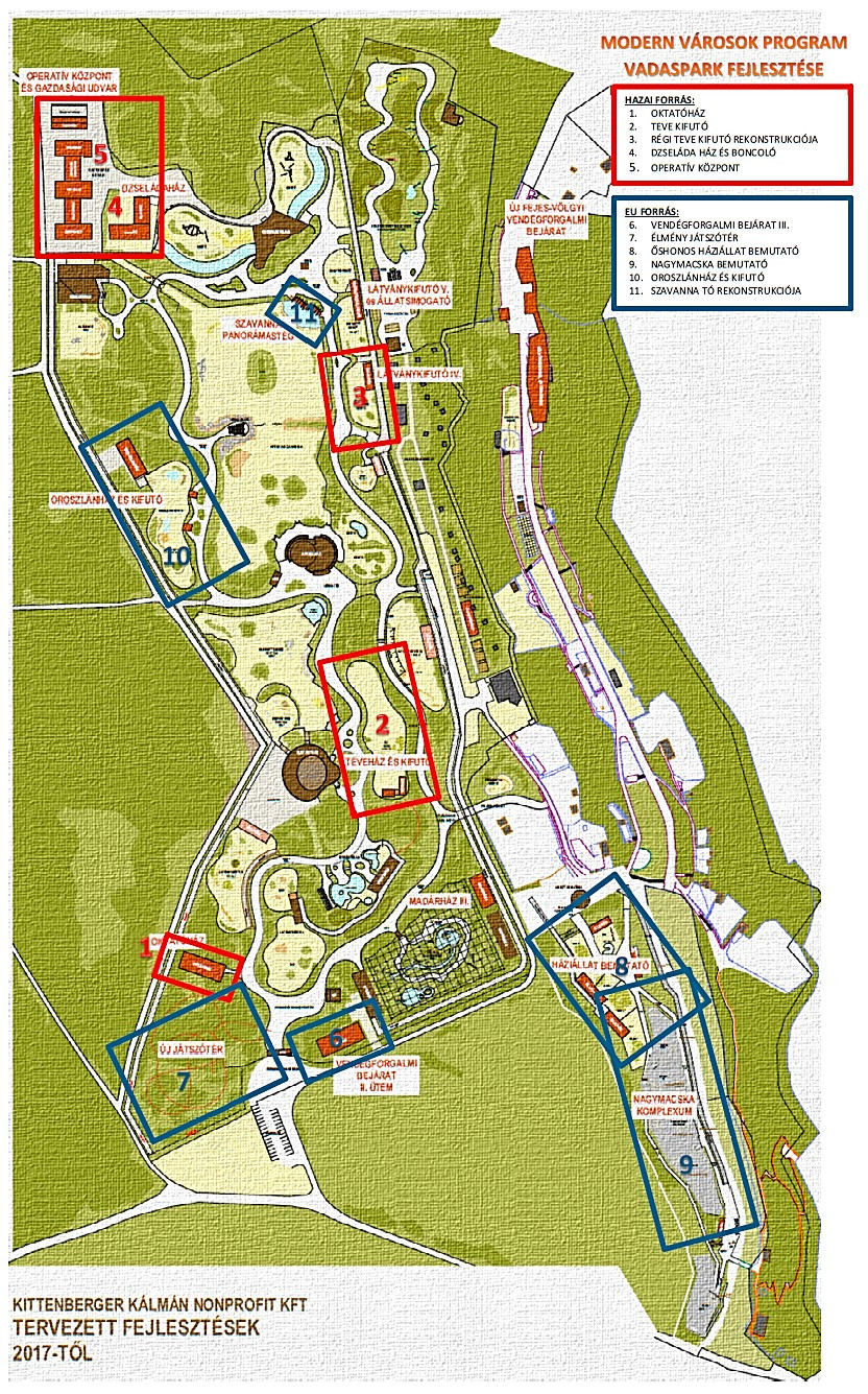 Ami az Európai Uniótól kapott forrásokat illeti, abból új bejáratot és élmény-játszóparkot alakítanak ki a Gulya-dombon, megújul a nagymacska-komplexum és a háziállat-bemutatóhely. Rendbe teszik a szavanna kifutó tavát, és a közelbe, a Gulya-dombra, új helyükre költöztetik az oroszlánokat.