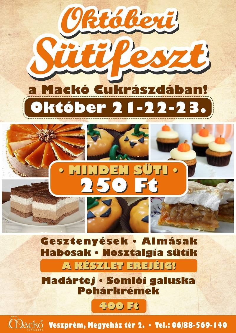 9) Sok-sok süti és torta várja a vendégeket: köztük alap, marcipános, fényképes, forma, nude és mentes torták, ezen kívül: madártej, somlói galuska, linzer és francia teasütik, szezonális sütik (mézeskalácsház, beigli) és sok más, amit felsorolni is nehéz.