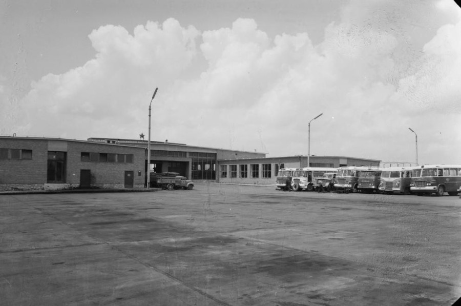 Az UVATERV Fortepanra feltöltött fotói 1963-ban és 1964-ben készültek a 15-ös AKÖV (Autóbusz-közlekedési Vállalat) Pápai úti telephelyén.