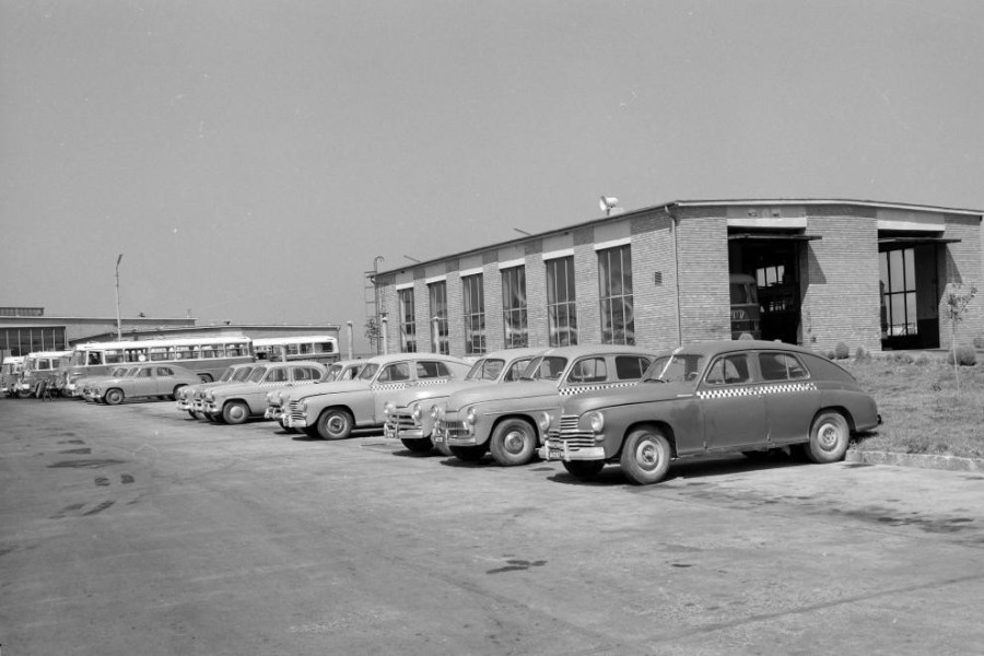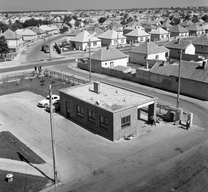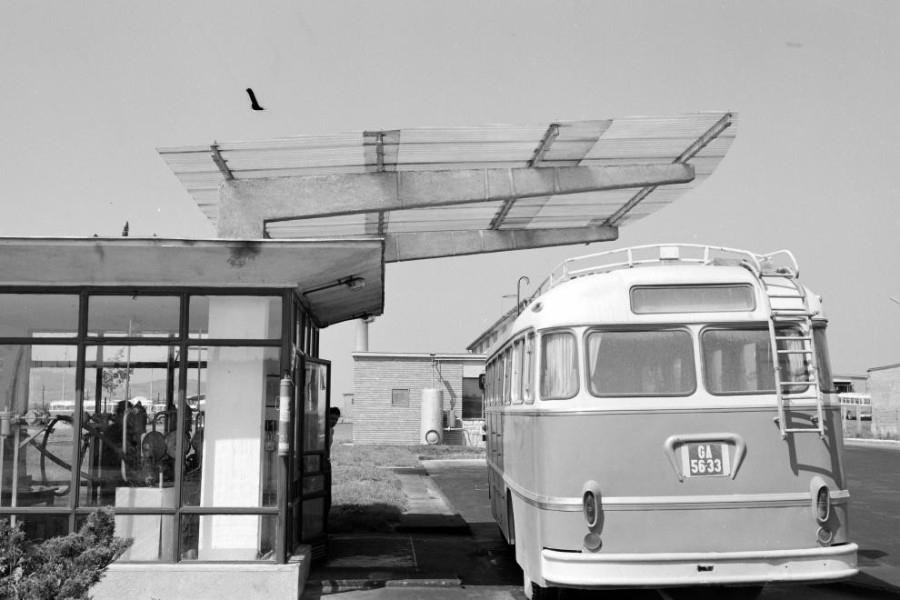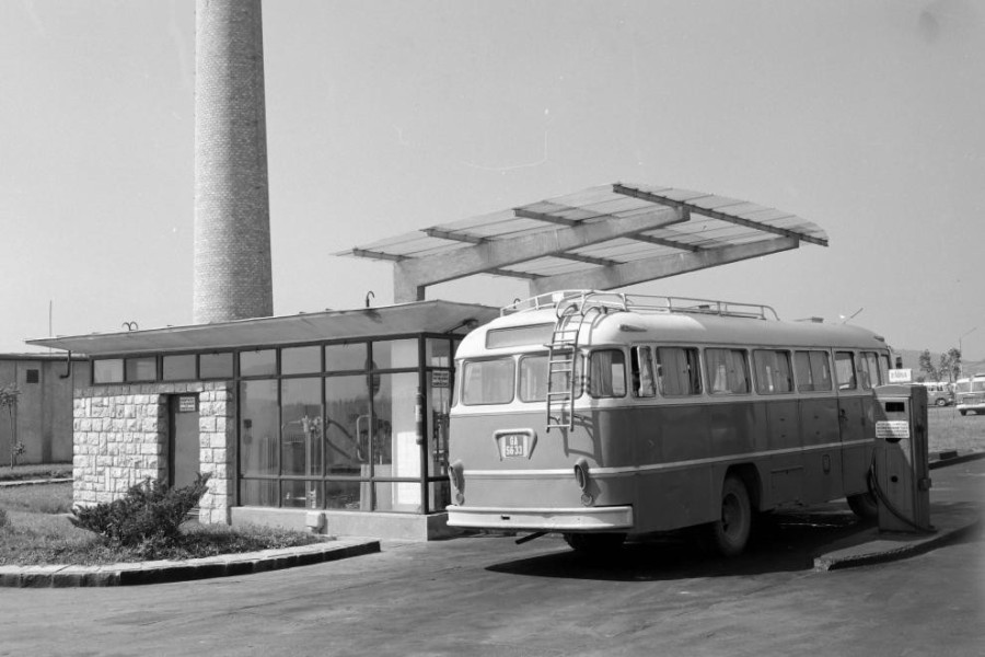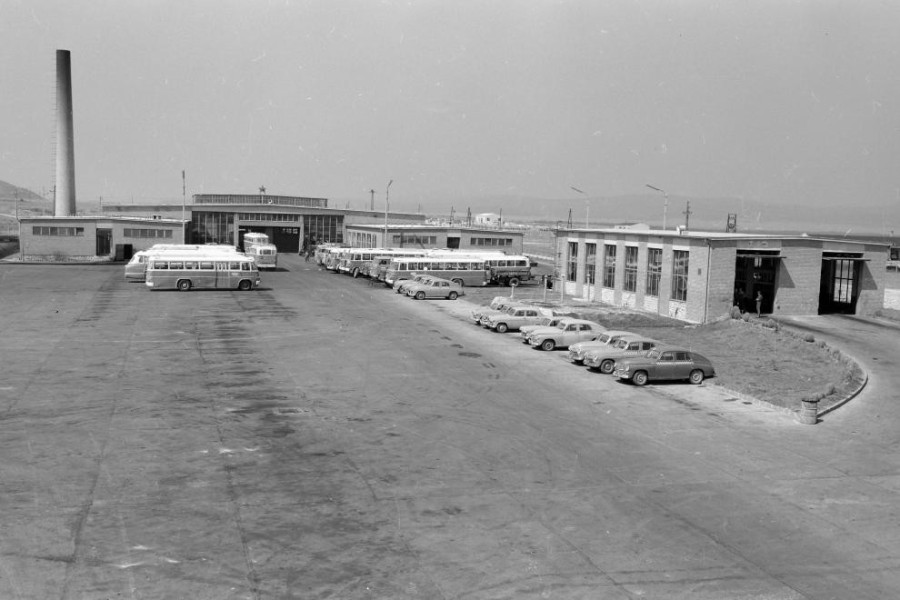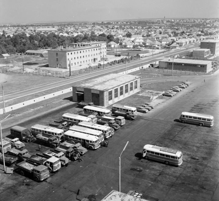 Az UVATERV Fortepanra feltöltött fotói 1964-ben készültek a 15-ös AKÖV (Autóbusz-közlekedési Vállalat) Pápai úti telephelyén.