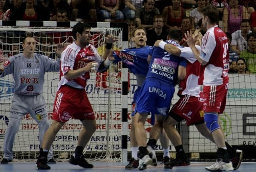 Álomrajtot vett a találkozó elején a Mocsai-csapat, amely a 7. percben már 6:1-re vezettet. A mieink könyörtelenül kihasználták az álmosan kezdő szegediek összes hibáját. Marjanac védései után hamar magára talált a Pick: Katzirz és Laluska után a 13. percben Petrea is feliratkozott a gólszerzők közé (7:5).