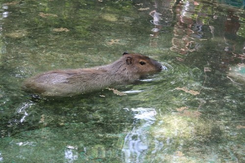 A "beizzított" kamerák, fotómasinák előtt komótosan mászott ki speciális szállítóládájából az első kapibara, azaz vízidisznó. Ideális fotóalanynak bizonyult, mert minden irányból, ráadásul vízben is készségesen állt rendelkezésünkre. Három társa is követte rövidesen, majd a pampanyulak következtek.