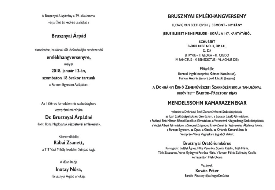 Brusznyai-emlékhangverseny az egyetemen