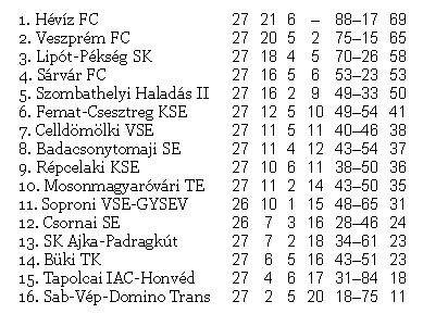 Tapolca: Radnai – Berta (Németh A.), Bárány, Lendvai M. (Halász D.), Kulman – Hegyesi, Markó, Tüske M., Tóth Sz. – Marton G., Viski. Játékos-edző: Kutasi Gábor.