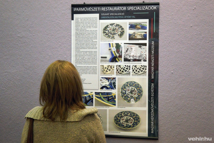 Az igazgató asszony a megnyitón a tárgyak ismertetése mellett rövid betekintést is nyújtott a restaurátor képzés hátterébe. A Képzőművészeti Egyetem Restaurátor Tanszékén belül képző- és iparművészeti restaurátor specializációkra különül el a képzés. Míg előbbi keretében festmény, fa- és kőszobrász restaurátorok tanulnak, utóbbin belül szilikát, fém-ötvös, papír-bőr, textil-bőr és fa-bútor területen lehet specializálódni. Mindkét specializáció esetében közös azonban, hogy a hallgatók minden anyagról tanulnak, hiszen a gyakorlatban a legtöbb tárgy rendkívül összetett és nagy odafigyelést igényel.