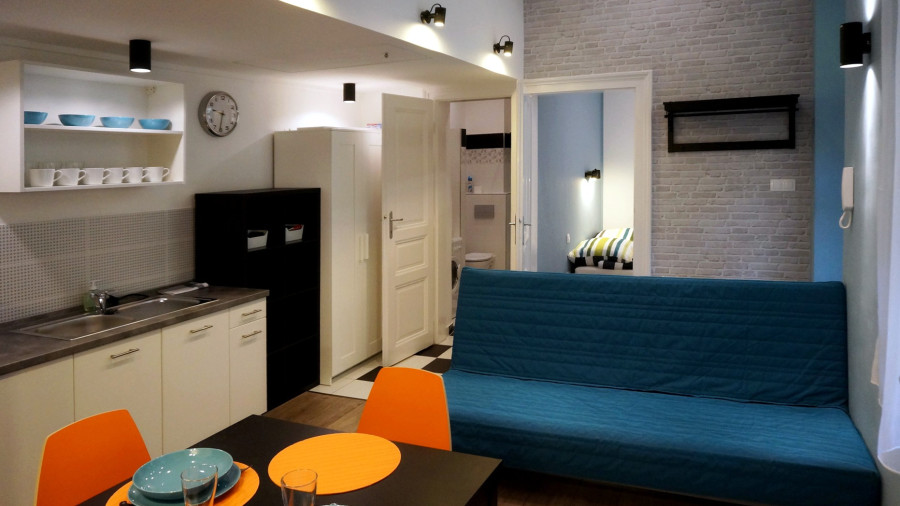 Igen, egy 20 négyzetméteres legénylakásban kellett a legjobb megoldásokat megtalálni. Ott mindent egyben kellett látni, a konyha volt a legkevésbé fontos, a fürdőszoba, a sok szekrény, a kihúzható kanapé viszont annál fontosabb.