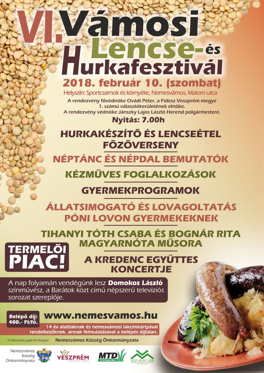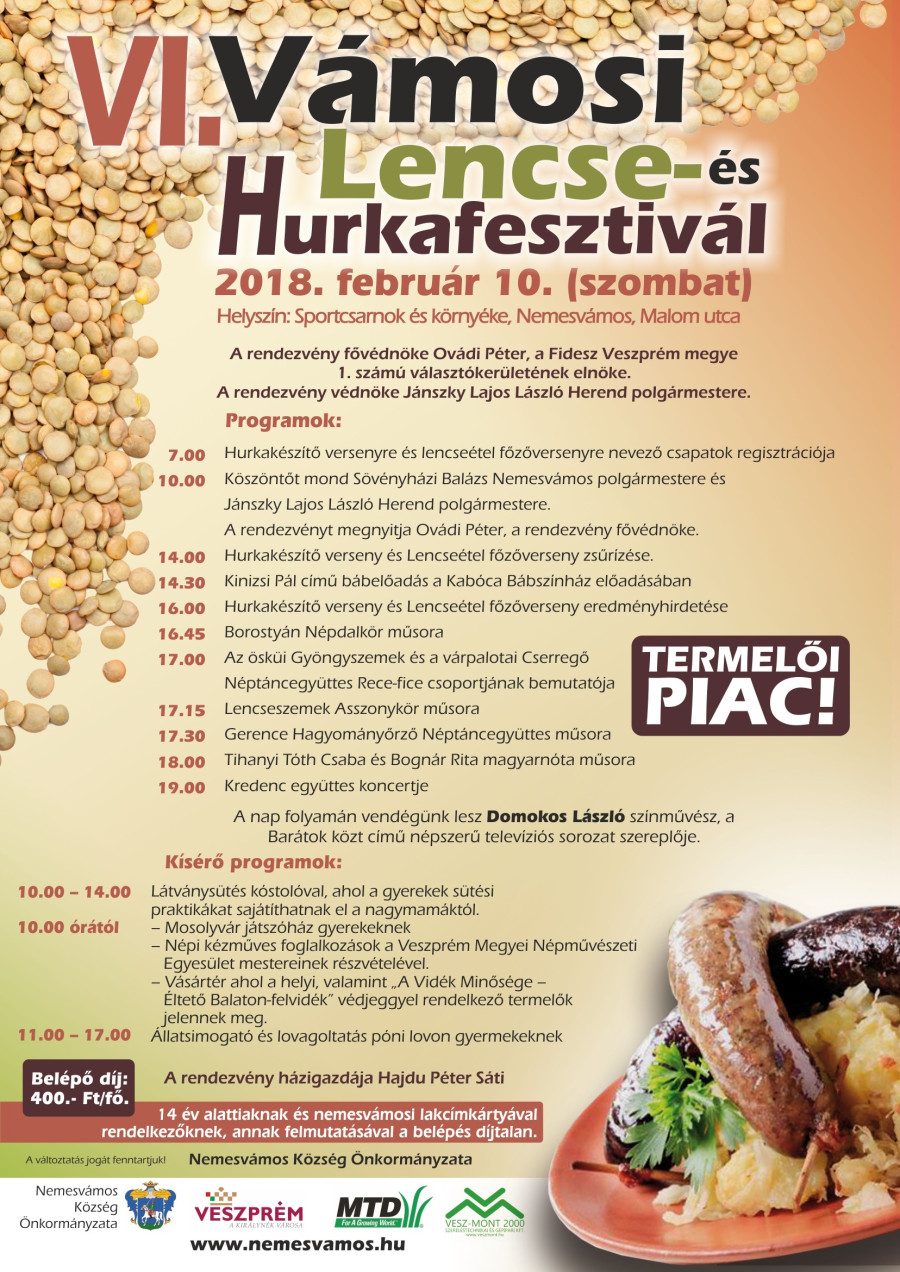 A rendezvényen ezúttal is hurkakészítő és lencseétel-főző versenyre nevezhetnek a gasztronómiában jártasak. A szórakozásról a abóca Bábszínház, a Borostyán Népdalkör, az ösküi Gyöngyszemek, a várpalotai Cserregő néptáncegyüttes Rece-fice csoportja, a Lencseszemek Asszonykör és a Gerence Hagyományőrző néptáncegyüttes gondoskodik.