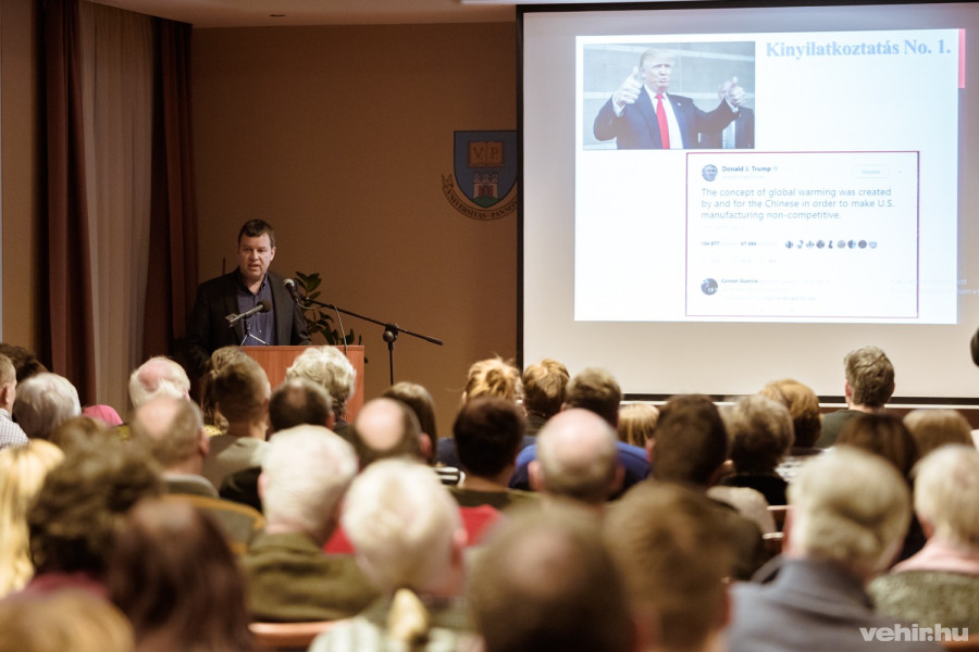 Előadása elején a rektor Donald Trump amerikai elnök tweetjeit idézve felhívta a figyelmet arra, hogy a világpolitikában ismét megerősödtek a klímaváltozás-szkeptikus hangok. Csakhogy „a természetet nem érdekli, hogy ki milyen pártállású, ki hisz benne, ki nem hisz benne, az ugyanúgy megy a maga törvényei szerint.”