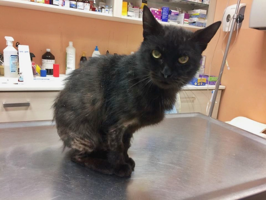 Sztafi egy bőrbeteg (staphylococcus), 3 éves, eddig lakásban tartott ivaros kandúr, végtelenül kedves, hálás minden törődésért. Kezelése elkezdődött, antibiotikumot kap, gyulladáscsökkentőt, élősködő mentesítése megtörtént, immunerősítőt valamint hypoallergén tápot kap - hiszen egy ételallergia is szóba jöhet.