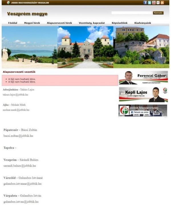 A Jobbik Veszprém megyei honlapján az alapszervezetek vezetőinél Tapolcát egyszerűen kihúzták.