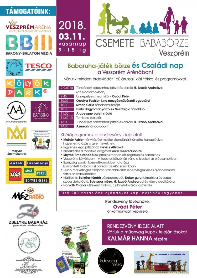 – Az 5. alkalommal megrendezendő és sok anyuka által régen várt esemény méltón csatlakozik fel a kormány által meghirdetett programhoz is, amely 2018-at a családok évének nyilvánította. Bár Veszprémben hivatalosan tavaly tartottuk a családok évét, a figyelem természetesen nem redukálódik le egy esztendőre. Veszprém hagyományosan családbarát település és családbarát önkormányzat (2015-ben meg is kapta utóbbi díjat), melyet a kismama bérlet, az újszülötteknek járó ajándékcsomag és a bölcsődék, óvodák fejlesztése is jelez – mondta el Ovádi Péter önkormányzati frakcióvezető, a Fidesz-KDNP országgyűlési képviselőjelöltje, egyben a rendezvény fővédnöke.