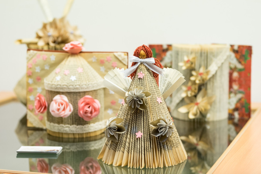 Tóth Gyöngyi kreatív papírdekorációi a megújulás jegyében születtek. A régi, kidobásra ítélt könyvek lapjaiból a fantázia segítségével számtalan forma bontakozhat ki, és válhat a lakás különleges díszévé. A papírdekor kiállítást Németh Szilvia veszprémi írónő nyitotta meg, aki versében és beszédében is felhívta a figyelmet arra, mennyire fontos, hogy a lélekben rejlő alkotó erőket felszínre tudjuk hozni.