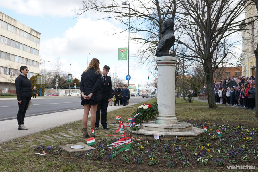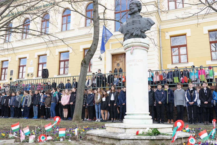 Az ünnepi műsor zárásaként a jelenlévők elhelyezték az emlékezés koszorúit Kossuth Lajos szobránál.