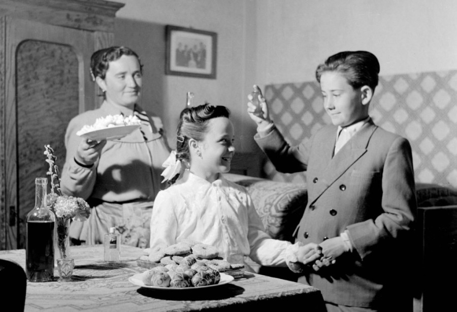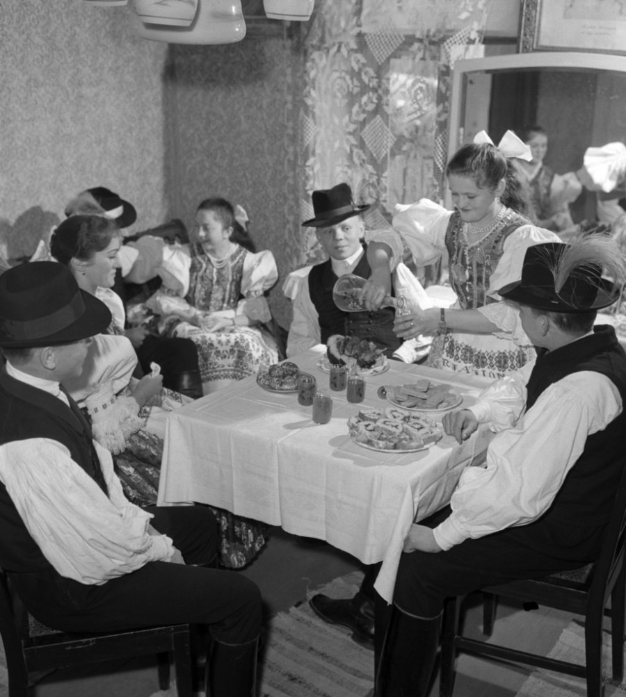 A Húsvét régen arra is remek alkalom volt, hogy összejöjjünk és finom sütemények mellett beszélgessünk. /Fotó: Őrhalom, 1961. március 31. Az őrhalmi fiatalok a falu hagyományait felelevenítve Húsvétkor összegyűlnek és terített asztalok mellett beszélgetve ünnepelnek. MTI Fotó: Bajkor József