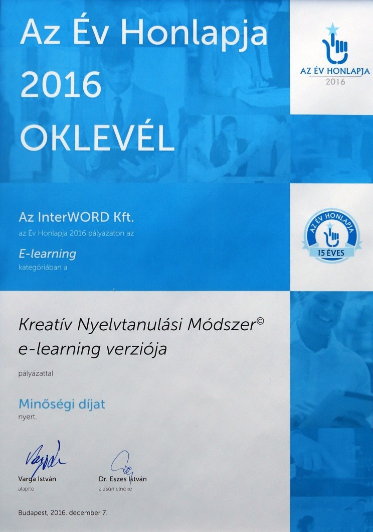– Tényleg igaz, hogy a Kreatív Nyelvtanulás online gyakorló programját az év honlapja díjkiosztón Magyarország legjobb nyelvoktató honlapjának választották?