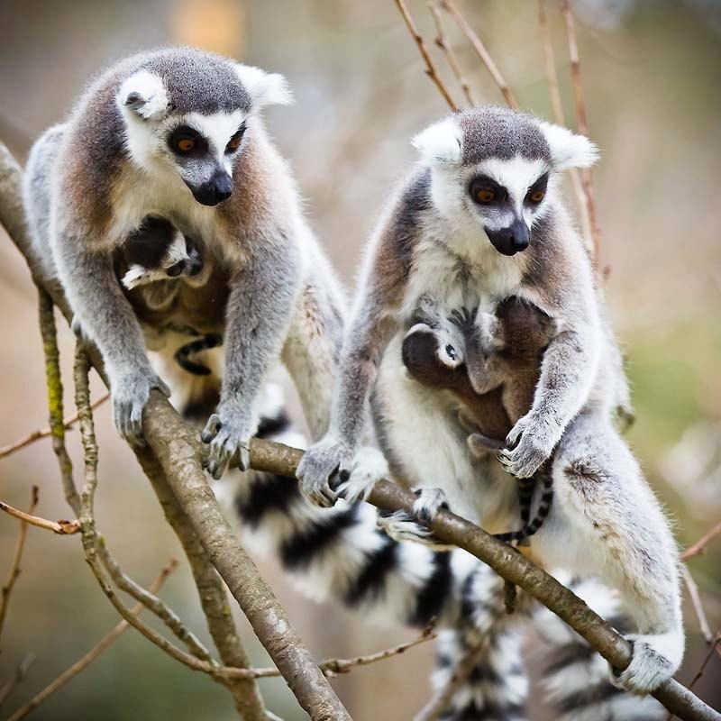 A négy kis játékos apróság szépen cseperedik, azonban napjuk nagy részét még anyjuk szőrébe kapaszkodva töltik. A kicsik öthónapos korukig anyatejjel táplálkoznak, de kéthónapos koruktól már kóstolgatják a gyümölcsöket, zöldségeket, a különböző hajtásokat és a leveleket is. A katták könnyen felismerhetők hosszú, gyűrűs mintázatú farkukról, amelyet járás közben a magasba tartanak. Madagaszkár déli és délnyugati részén fekvő erdőkben honosok. Mókás külsejükkel és játékos viselkedésükkel mindig elnyerik a látogatók tetszését. A kis apróságokat jó idő esetén minden kedves látogatónk megcsodálhatja a Fejes-völgyi kifutójukban.