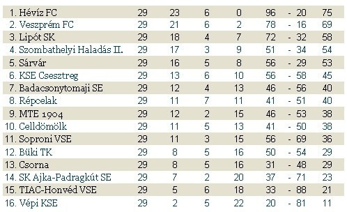 Veszprém, 300néző.Vezette: Szántai (Horváth Z., Mogyorósi)
