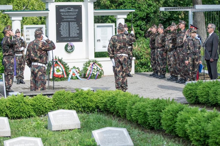 A Veszprém Helyőrség katonai szervezetei által szervezett megemlékezésen dr. Gyenei Balázs hadnagy mondott beszédet.