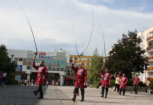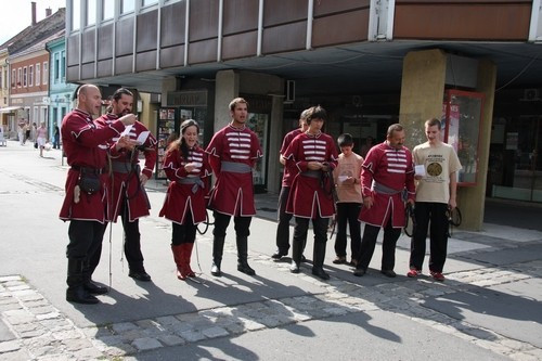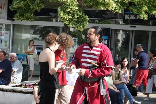 Látványos, jópofa, néha kissé ijesztő, de semmiesetre nem elítélendő. Effélét láthattunk szerda délután Veszprémben a posta előtt, majd az Óváros téren.