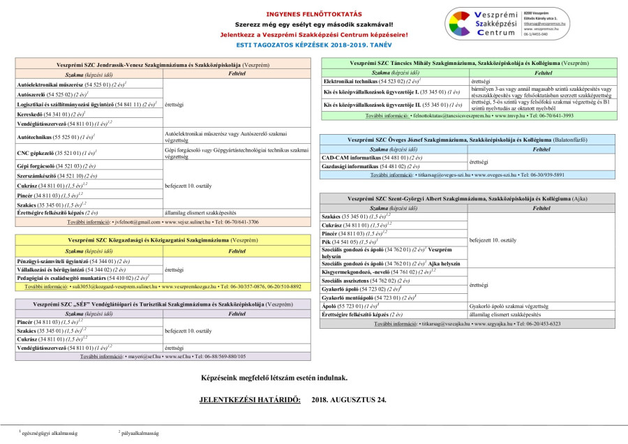 Szerezz még egy esélyt egy második szakmával! Jelentkezz a Veszprémi Szakképzési Centrum képzéseire!