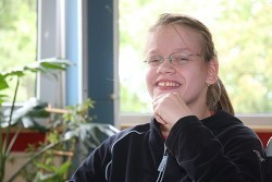 - Születésemkor kaptam agyvérzést, a helyzetem meg is visel, meg nem is, megszokni nem lehet, csak együtt élni vele – mondja a hatodik osztályos, kerekesszékes Matuszek Ágnes. Alsó tagozatban a budapesti Pető Intézet bentlakásos iskolájában tanult, tavaly iratkozott be az otthonától tíz perce lévő Botevbe. A közlekedés úgymond az épületen belül egyáltalán nem okoz neki gondot, ha szükség van rá, akkor képzett pedagógiai asszisztens segíti. - Csak megcsörgetem telefonon, és jön, a mobil egyébként is nélkülözhetetlen eszköz egy mozgáskorlátozott számára. Az osztálytársaim is segítőkészek, könnyen befogadtak. Budapesten 5-6-an voltunk egy csoportban, de mivel lelkiekben felkészültem, nem volt nehéz az itteni 29-30 fős osztályba beilleszkednem.