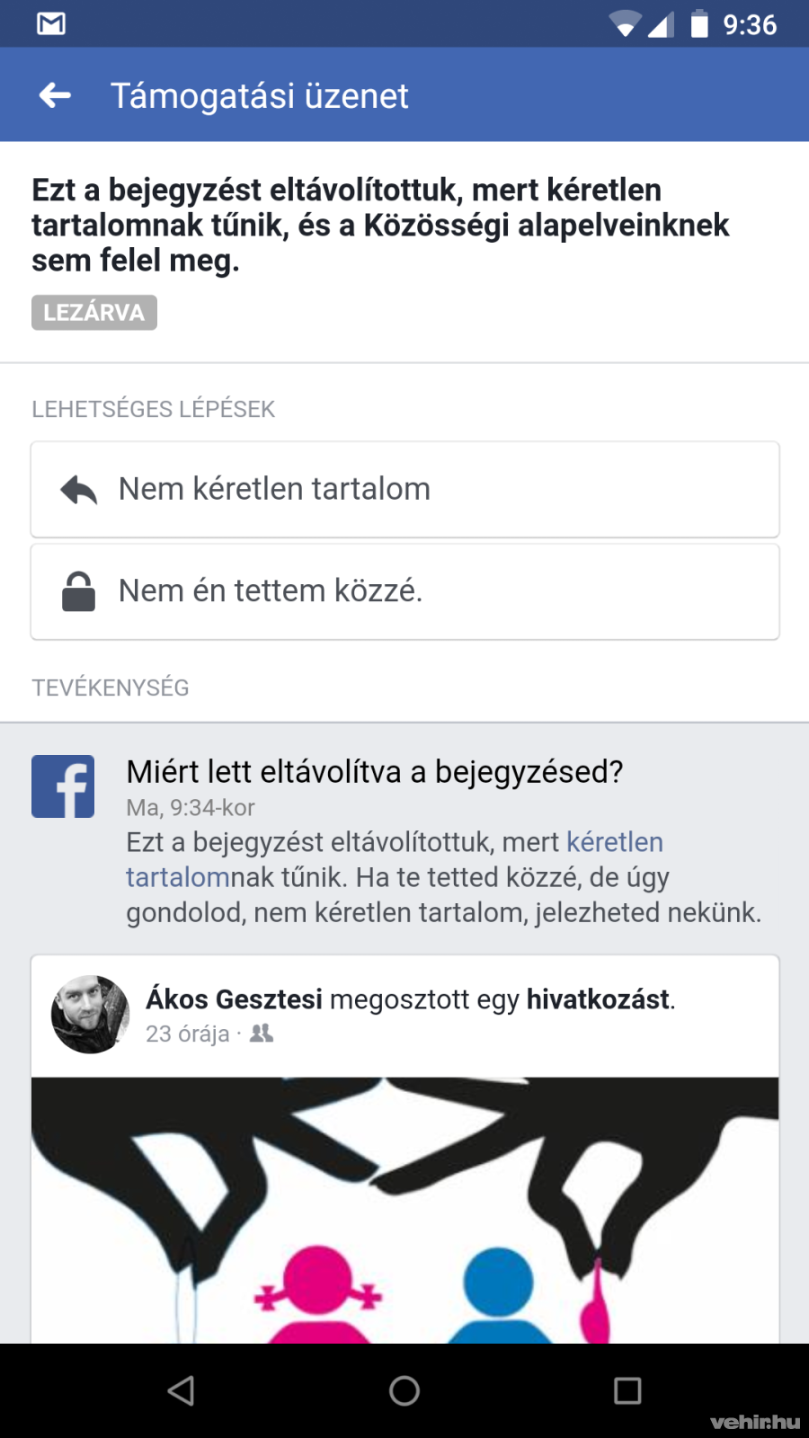 Tehát törölték az általam megosztott linket azért, mert az nem illik bele a közösségi alapelvekbe és kéretlen tartalom. Ezek alapján elmondható, hogy kéretlen tartalom az, ha a Facebook „gondolkodásával” szemben foglalok állást valamiről. Nem illik bele a közösségi alapelvekbe, ha konzervatív megközelítéssel fejtem ki valamiről a véleményem.