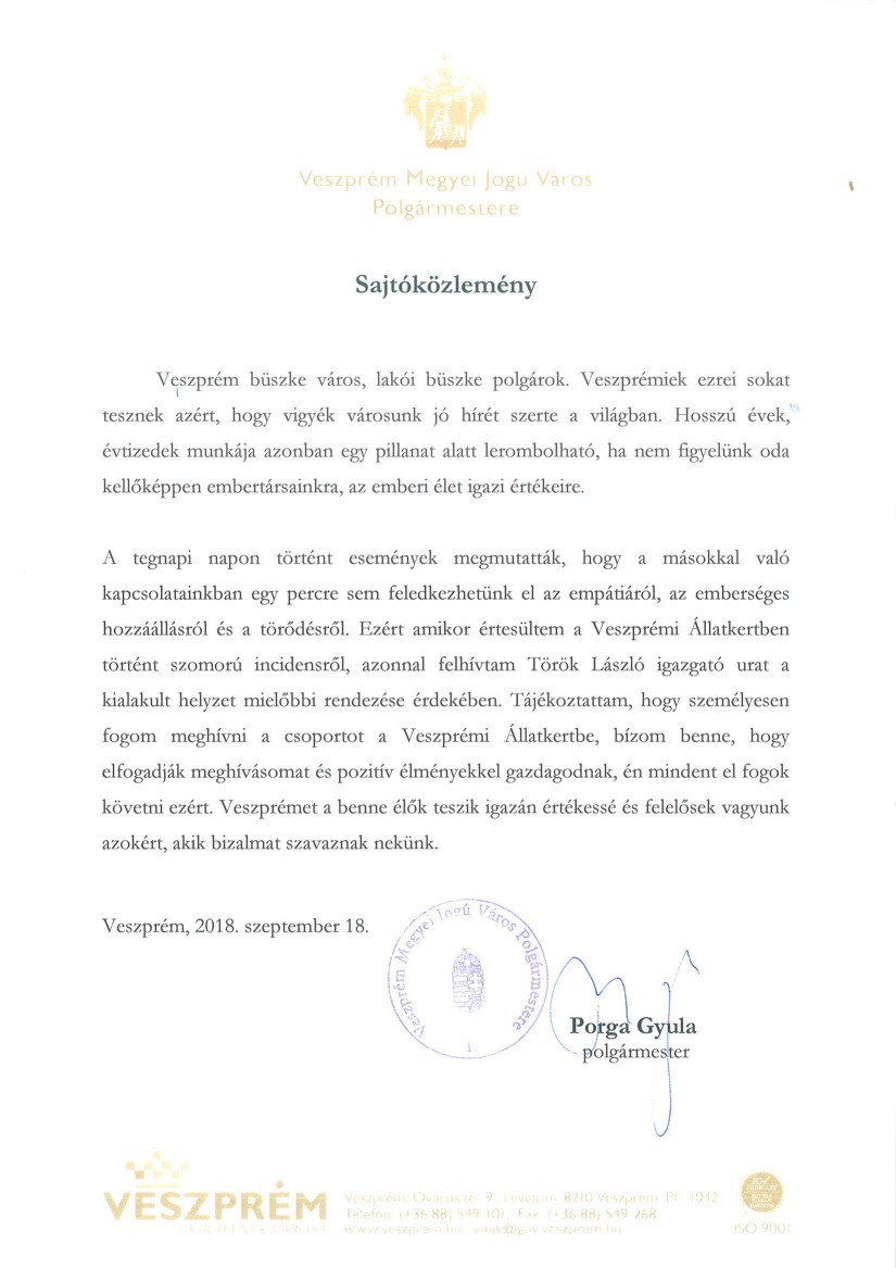 Az esetről Porga Gyula is értesült, aki úgy döntött, maga fog gondoskodni a csoport kárpótlásáról. Az ezzel kapcsolatban kiadott sajtóközleményt változtatás nélkül közöljük.