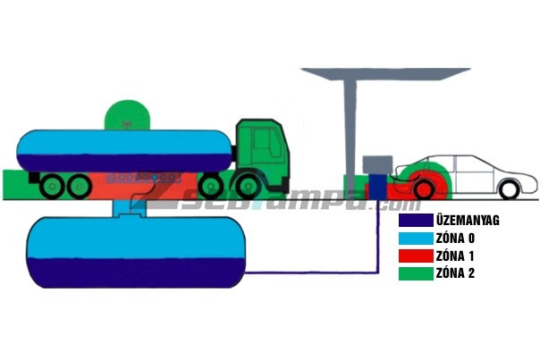 Zóna 1: Ebben a térségben az éghető anyagból és levegő keverékéből álló robbanásveszélyes anyag alkalmanként fordul elő.