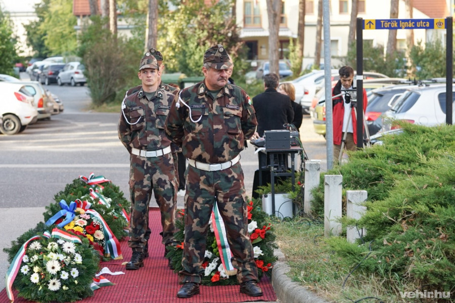 A beszédek után a jelenlévők tiszteletet adva elhelyezték az emlékezés koszorúit.