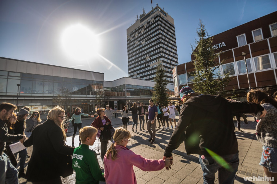 A résztvevők szerdán egy flashmob segítségével kívánták Veszprém lakosságának figyelmét felkelteni a projekt témája iránt.