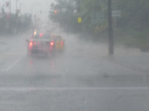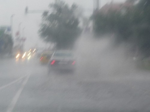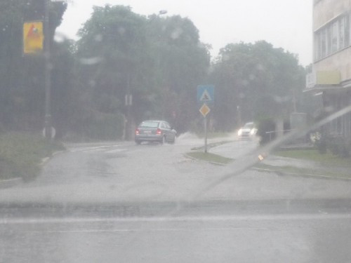 Munkatársunk, Beke G. László épp hazafelé tartott, amikor autóját motorcsónakká kellett átalakítania. Sebtiben arra is jutott ideje, hogy pár képet is készítsen. Ugye, nem marasztalhatjuk el, hogy csak szélvédőn keresztül fotózott?