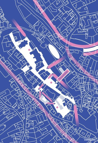A tanulmány a Veszprém Európa Kulturális Fővárosa pályázat kapcsán három főbb, a pályázatban is érdekelt területet és a köztük lévő kapcsolatokat, kapcsolódási lehetőségeket vizsgálja: a Jutasi út, Munkácsy utca, Görgey Artúr utca és az Aradi vértanúk utca által határolt (köznyelven egységesen Haszkóvó lakótelepként emlegetett) területet, a Vár utcát, vár negyedet, illetve a buszpályaudvar, piac és az egykori bútorgyár területét.