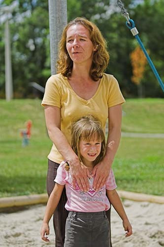 A Cholnoky lakótelep modern játszóterére Csapóné Sütő Gyöngyi két apróságát, Lacit és Noémit vitte le.