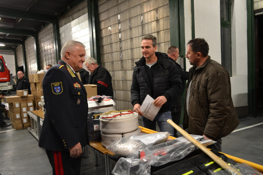 A hivatásos tűzoltó-parancsnokságokkal együttműködési megállapodást kötött önkéntes tűzoltó egyesületeknek és mentőcsapatoknak, valamint a megyei önkormányzati tűzoltóságoknak Dányi Béla megyei igazgató adta át a támogatásként kapott eszközöket.