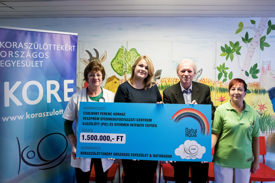 A NaturAqua és közreműködő partnere, a KORE segít a családbaráttá tenni hazánk összes, szám szerint 29 kórházi osztályát, hogy a koraszülött csecsemők ápolása mellett szüleik nyugalmát is szavatolja. Az év végéig átadott eszközöknek köszönhetően újabb 3 PIC otthonosabbá tételéhez járulhattak hozzá, hogy azok is meghittebb környezetben készülhessenek az ünnepekre.