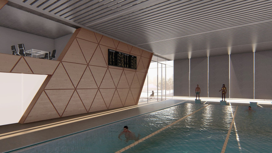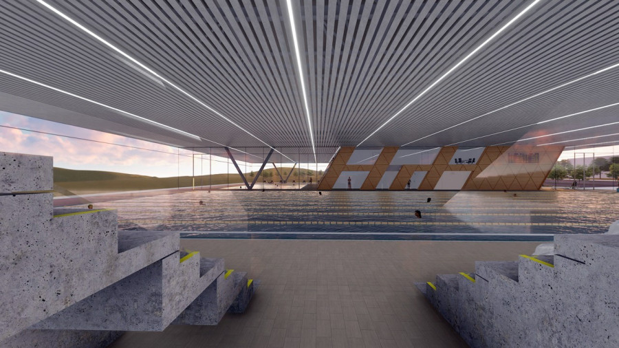 - versenymedence (50x25 m, mélység: 2,2 m) 750 fős lelátóval, világítása HD TV közvetítésre is alkalmas lesz,