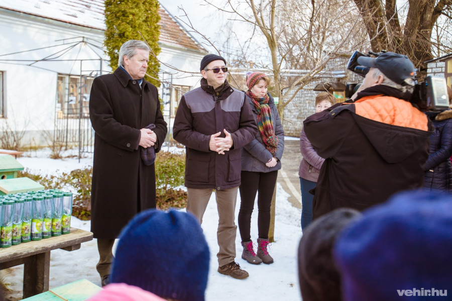 A madárodúkat Horváth Zoltán adta át Némedi Lajos és Eveli Péter, a Táncsics Mihány Szakközépiskola igazgatójának segítségével a zöld koordinátoroknak, pedagógusoknak.