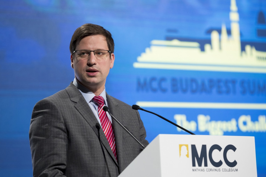 Gulyás Gergely, a Miniszterelnökséget vezető miniszter beszédet mond a Mathias Corvinus Collegium migrációs konferenciáján a Várkert Bazárban 2019. március 22-én. MTI/Mohai Balázs
