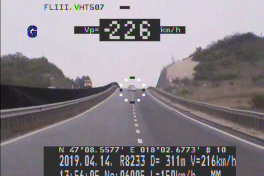 A Veszprém Megyei Rendőr-főkapitányság Forgalomellenőrző Alosztályának munkatársai vasárnap 14 órakor a 8-as számú főút 39. kilométerszelvényében, Veszprém felől Várpalota irányába sebességellenőrzésük közben egy személyautót mértek be, ami az adott útszakaszon megengedett legnagyobb sebességet - 110 km/h - átlépve,
