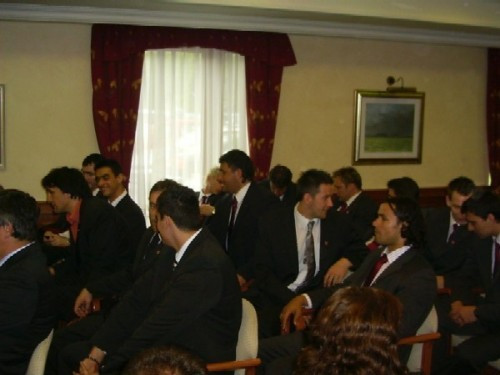 Debreczenyi János, Veszprém polgármestere hangsúlyozta, úgy szeretné a továbbiakban is vezetni a várost, hogy maga körül mosolygós embereket lásson. Ma az MKB Veszprém hétvégi 5 gólos győzelme után a fogadáson pedig széles mosolyok fogadták a játékosokat. Mosoly nélkül, lehajtott fejjel nem lehet győzni, ezért a továbbiakban is ilyen bizakodó, küzdő szellemet vár el a csapattól a város, - fogalmazott a polgármester. Ti csak játszatok, mi pedig dolgozunk. Dolgozunk azzal, hogy megépítjük a hozzátok méltó csarnokot, s ezzel megmutatjuk, hogy elkötelezettek vagyunk a sport iránt, ezen belül is a kézilabda iránt, - tette hozzá.
