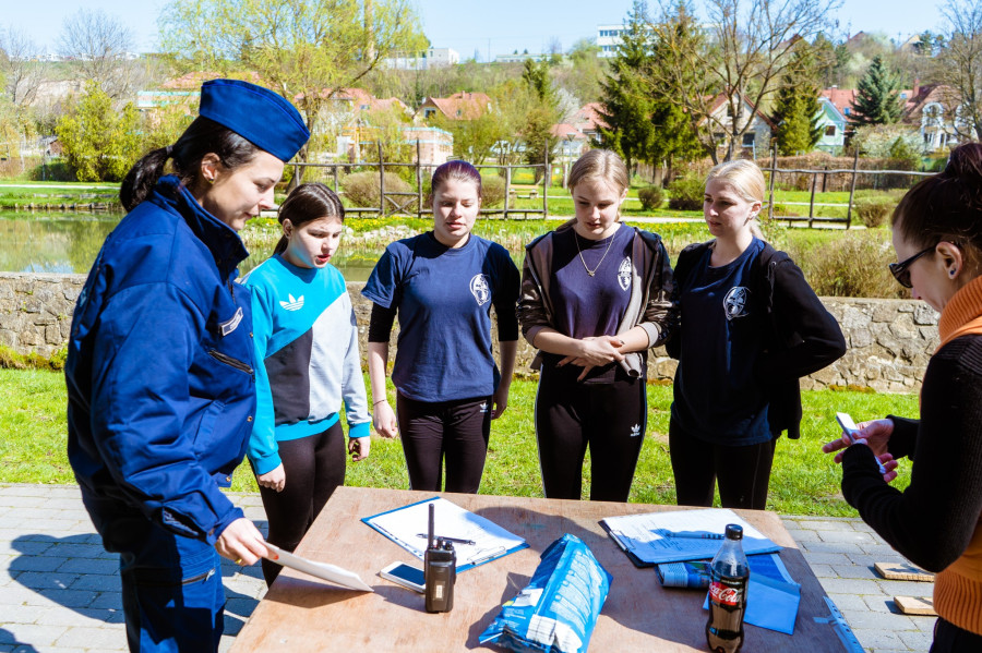 Részben hasonló feladat várt a csapatokra a hetedik állomáson, amely a „tájékozódás korlátozott látási viszonyok között” címet viselte. A csapatok két részre oszlottak, egy csapattag látását korlátozták. Egy másik társa rádión keresztül irányította őt addig, amíg a bekötött szemű csapattag magához nem vette a pálya végén található babát. Ezek után a babát át kellett vinni a másik csapathoz, amely tagjainak visszafelé kellett végrehajtaniuk a feladatot. A nyolcadik, elsősegélynyújtó állomáson a Magyar Vöröskereszt egy tagjának „fej-, és karsérülését” kellett ellátni az Országos Mentőszolgálat által meghatározott kötözési módszerek szerint. Emellett a gyerekek bemutattak egy stabil oldalfekvést, az újraélesztést prezentálták egy ambubabán, illetve egy tíz kérdésből álló tesztet is kitöltöttek.