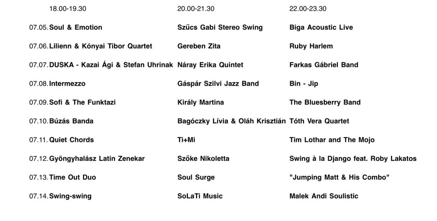 Mészáros Zoltán szerint egy gasztrokulturális rendezvény esetében a gasztronómia és a kultúra is azonos jelentőséggel bír, innen ered a fesztivál "30 borász, 30 koncert" szlogenje is. Az alapkoncepció nem változott: a színpadon minden nap a hazai jazz-soul zene kerül főszerepbe. Idén is lehetőséget biztosít a fesztivál a műfaj pályakezdő formációinak, illetve a szervezők próbálták a helyi vonalat is erősíteni, így az esti nagy produkciókat megelőzően színpadra lép például a Soul and Emotion, a Swing Swing, a Time Out Duo, majd a kezdő akkordokat követően, a program folytatásában Harcsa Veronika, Gereben Zita, Malek Andrea, Szőke Nikoletta, Tóth Vera és Biga zenéje színesíti a boros, mámoros nyári estéket.