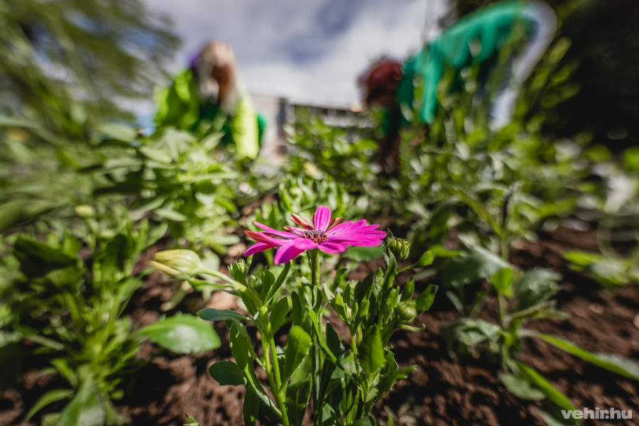A VKSZ Zrt. ültetési tervei alapján, növények és szerszámok biztosításával összesen több mint 750 tő virágot – főleg dáliát, petúniát, verbénát, begóniát – ültettek el pénteken a járda mentén.