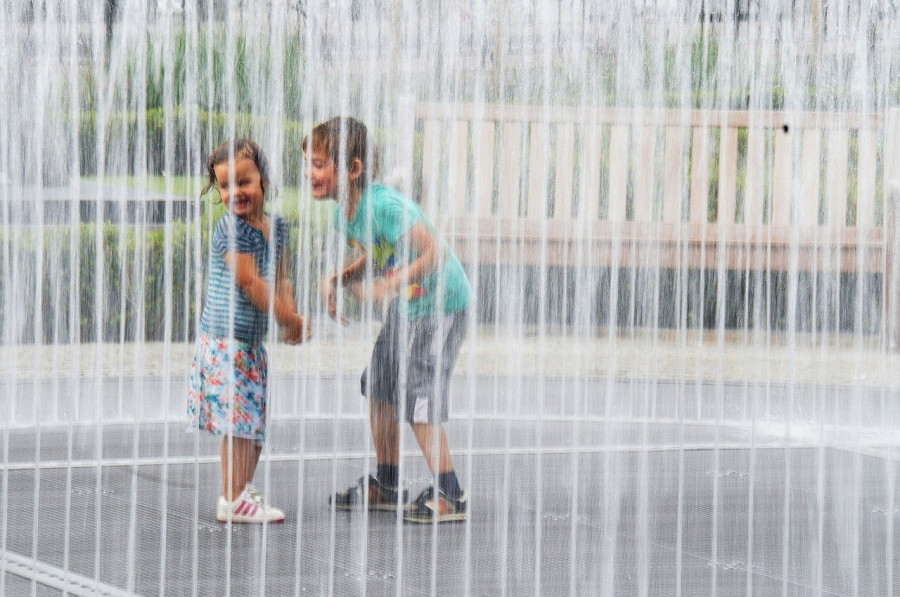 A szökőkútban fürdés minden bizonnyal nem mai találmány, bár régebben mintha furcsábban néztünk volna azokra, akik strandnak használják ezeket a látványelemeket. Mára valamiért eljutottunk oda, hogy szülők és nagyszülők a legnagyobb természetességgel engedik csemetéiket a vízfüggönybe, és még jóízűen kacarásznak is rajta, hogy milyen cukin pancsol a gyerek.