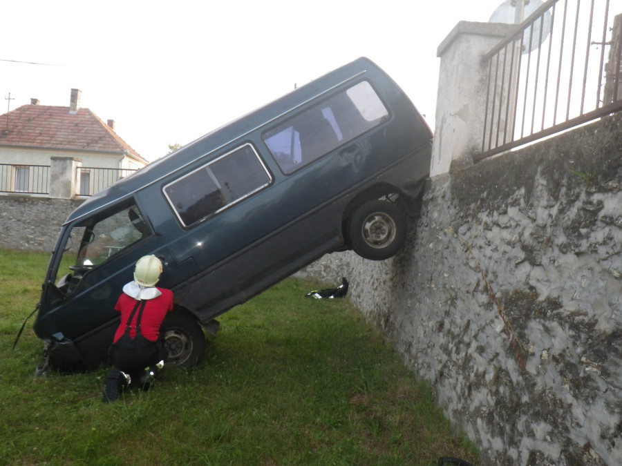 Kerítésnek ütközött és átszakította azt egy kisbusz Csabrendeken, a Kinizsi utca és a Hunyadi utca kereszteződésénél. A járművet mintegy két méter mélyen egy támfal tartotta meg.