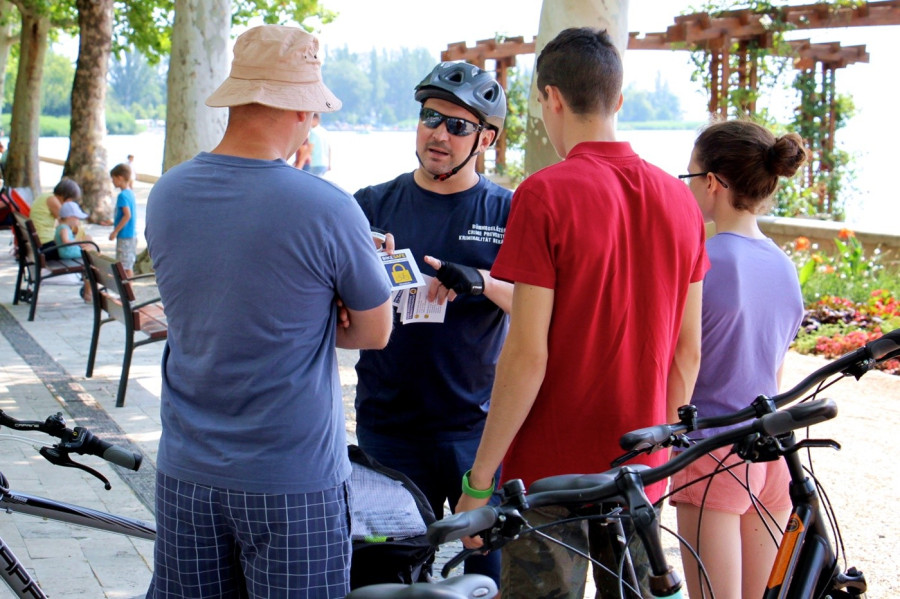A Veszprém Megyei Rendőr-főkapitányság Bűnmegelőzési Osztályának munkatársai a nyári turisztikai szezonban kerékpáros bűnmegelőzési szolgálatot látnak el a Balaton-parton, melynek során a szakemberek prevenciós tanácsokat adnak a biciklizőknek.