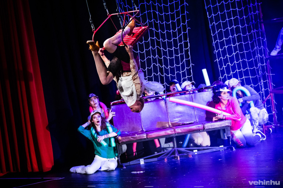 Villanó vaku, szelfi, telcsi, digitális bennszülött, aerobic, utcai edzőterem, megvásárolható diploma. Szokatlan jelenettel kezdődött az előadás: a jelenből együtt csöppentünk vissza a “történelmi múltba” az okos telefont nyomkodó fiatalt alakító Szelle Dáviddal.