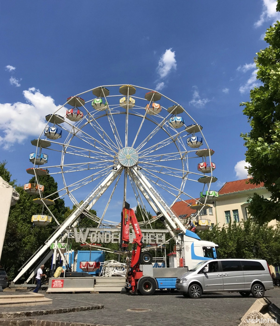 A régi kedves, búcsúi hangulatot árasztó óriáskerék kedden már el is foglalta a helyét az Óváros téren, már csak az utolsó simításokat végzik, holnaptól pedig bárki birtokba veheti.